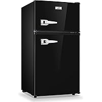 WANAI Compact Mini Refrigerator 2 Door Adjustable Removable Handle and Glass Shelves Small Drink Food Storage Cooler for Office, Dorm, Apartment 3.2 cu ft.Black